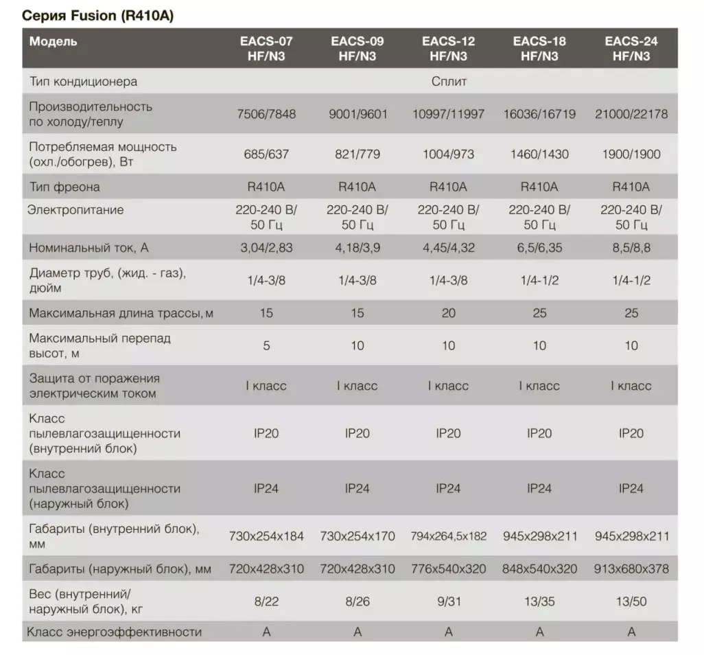 Класс энергоэффективности: А(обогрев)/А(охлаждение)