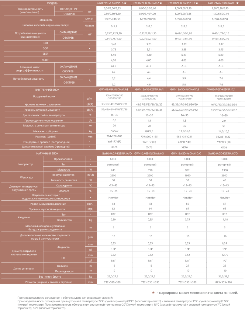 Заводская маркировка: GWH09АGАХА (27 кв.м.) / GWH12АGBХB (35 кв.м.) / GWH18АGD (50 кв.м.)