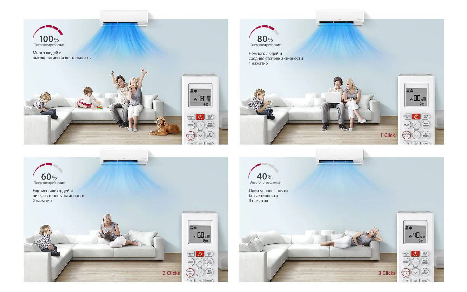 Потребляемая мощность при обогреве: 0,84 кВт (27кв.м.) / 1.00 кВт (35кв.м.)